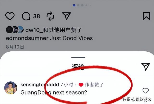不过有细心的球迷发现萨姆纳仍点赞了有关下赛季加盟广东的留言。