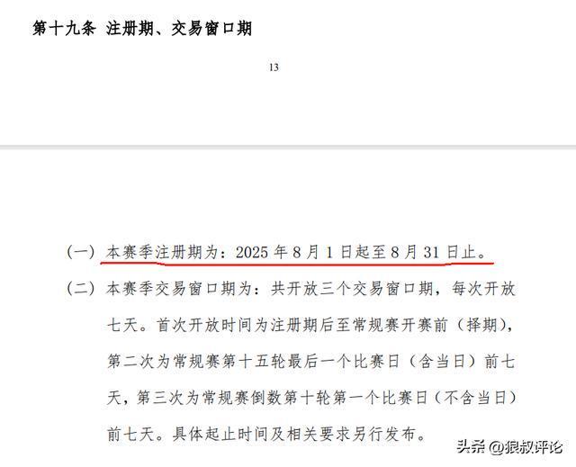 根据CBA规则,本赛季注册期为:2025 年 8 月 1 日起至 8 月 31 日止。